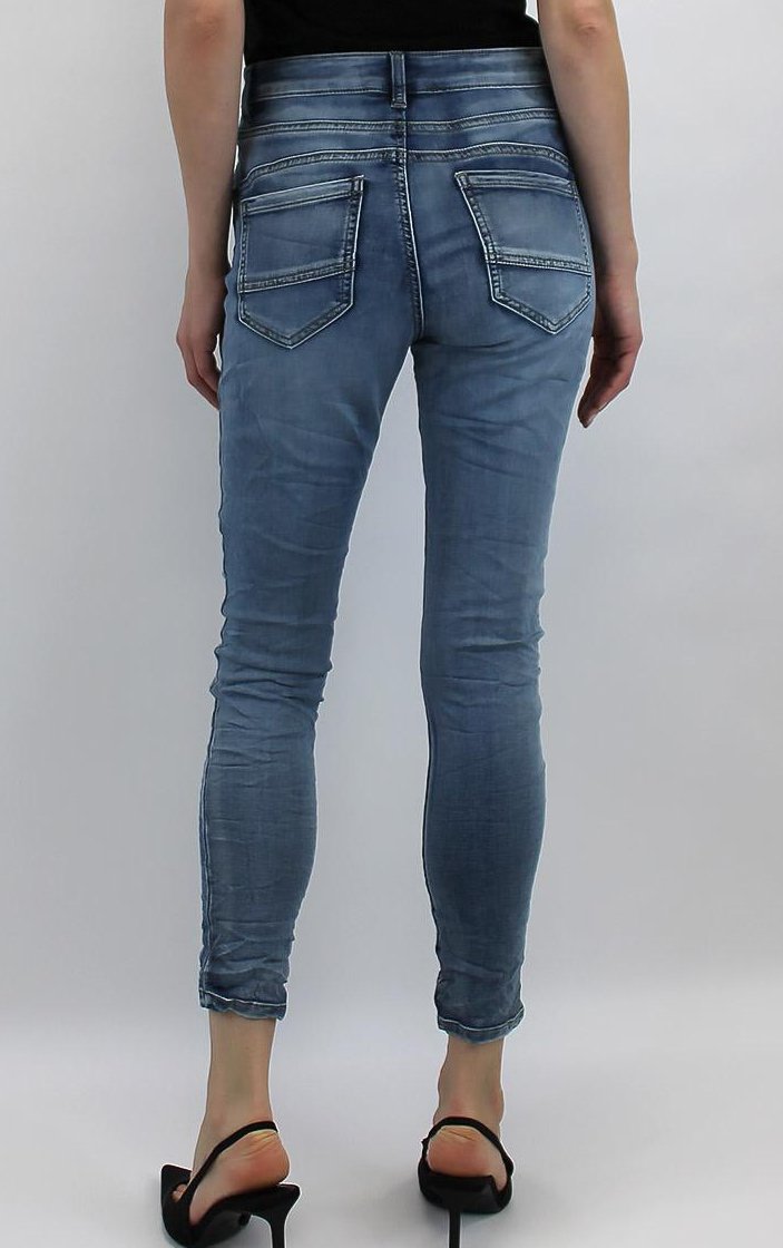 Jeansen 3228 från Newplay är snyggt tvättade jeans i ljusare nyans med ganska ren men ändå förhållandevis mycket tvätteffekt. Materialet är gjort i jogg-denim som är blir ett mellanting mellan mjukisbyxor och jeans i känslan. Väldigt mjuka och sköna.