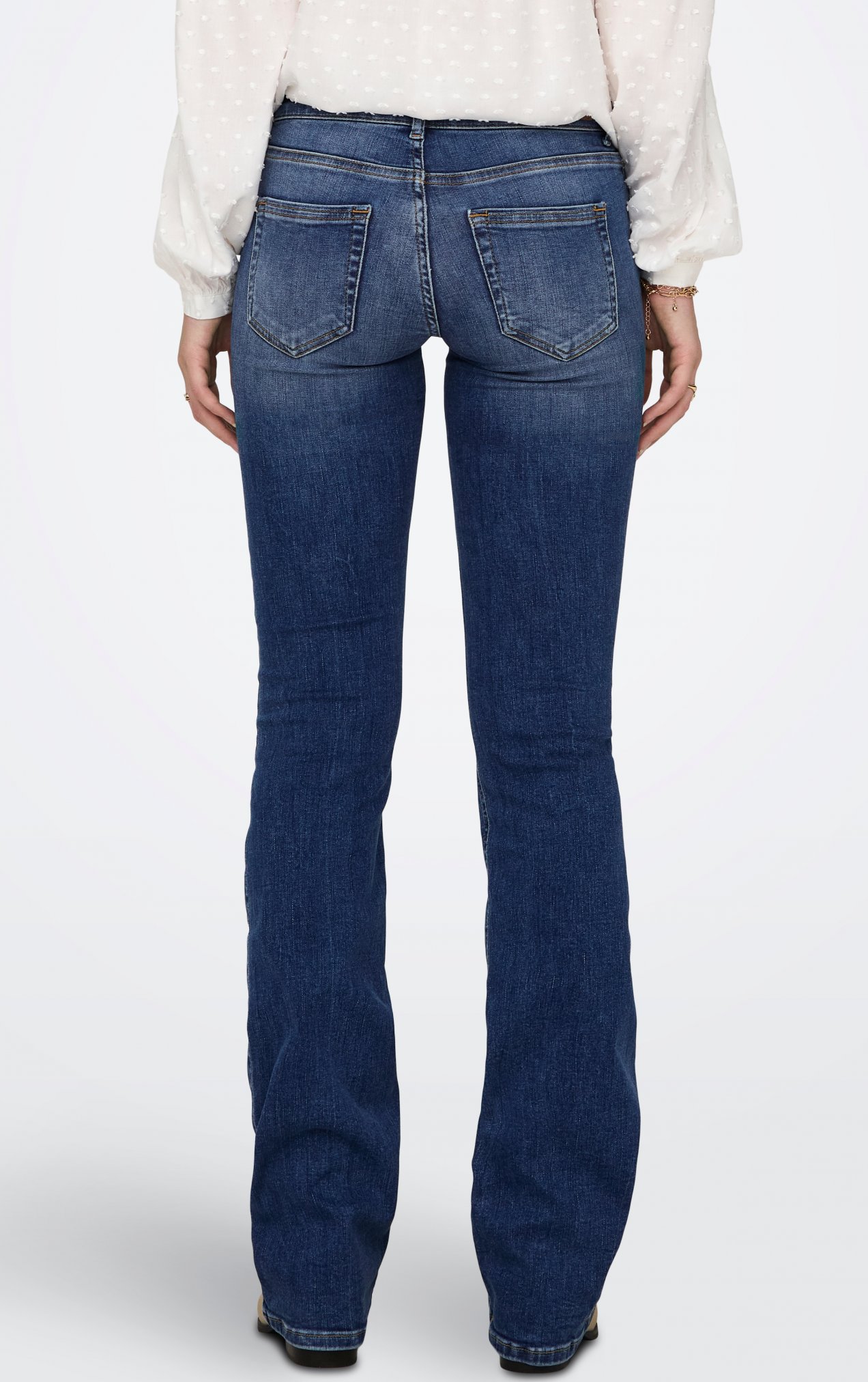 *Skönt stretchiga jeans i smal passform och låg grenhöjd. Modellen och materialet är förutom grenhöjden samma som övriga plagg i serien onlBlush Flared. Från knät och ner är modellen utsvängd.