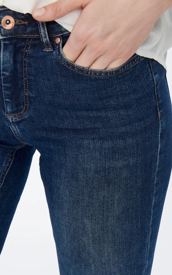 Modellen har ganska ren, mellanblå tvätteffekt som får effekt men ändå inte upplevs som för rå. Nedtill är det vanligt sydd kant.