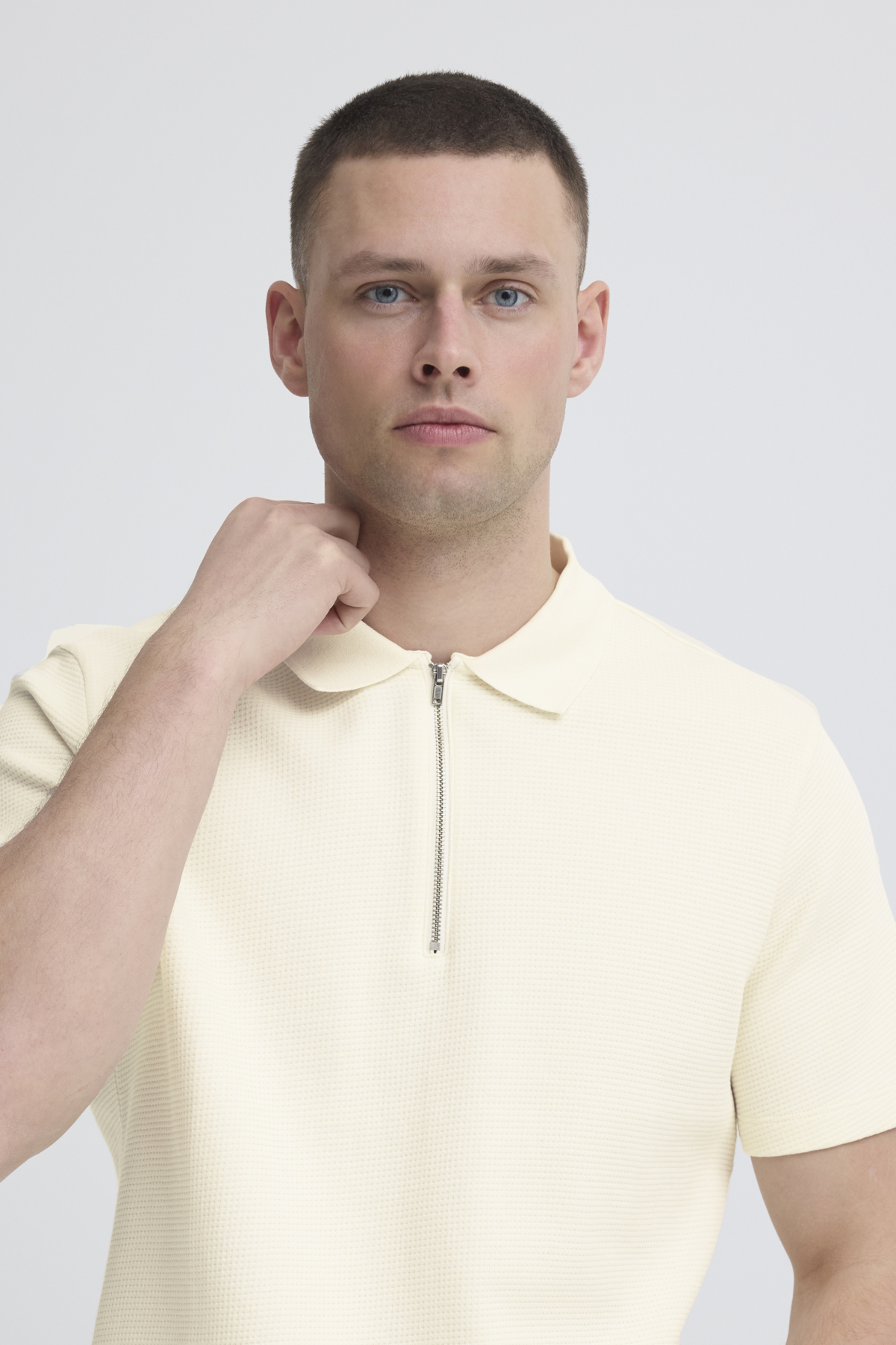 Frågan gäller "Blend - Piké 20720890 Våffelstruktur, Zip" som finns på https://www.mintfashion.se/killklader/pikeer/blend-pike-20720890-vaffelstruktur-zip/