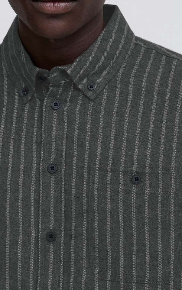 *Gjord i vävt material som är matigare än i en vanlig skjorta men fortfarande med en stadig yta som inte blir "flanellig".