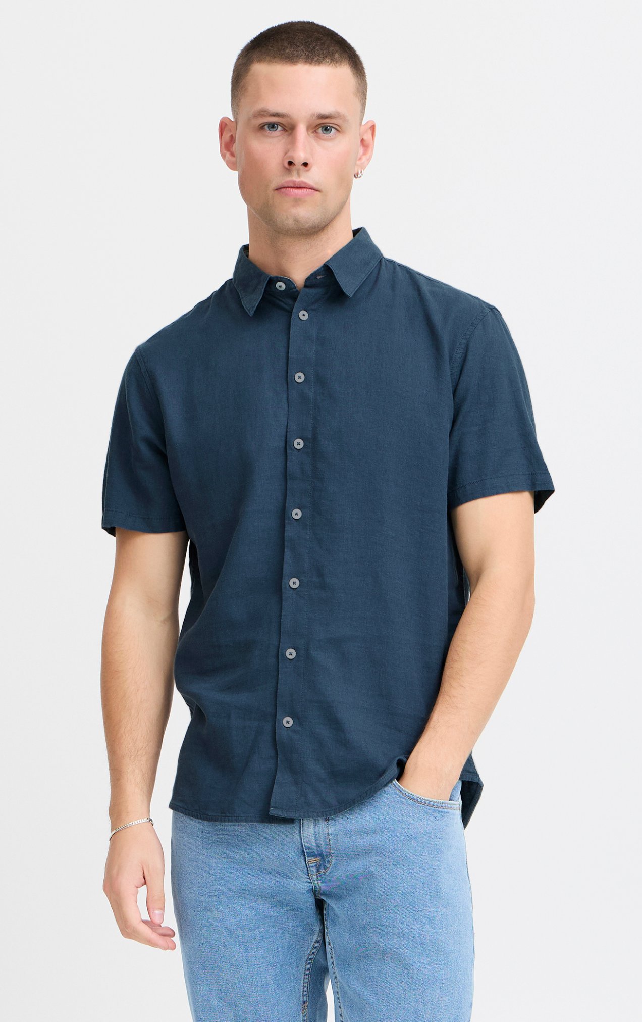 *Gjord i lin/viskos-blandning som får fin struktur och luftig känsla men ändå att tyget inte blir för skrynkligt. Materialet får lite mer lyster och mjukare känsla och fall än vanliga linneskjortor.