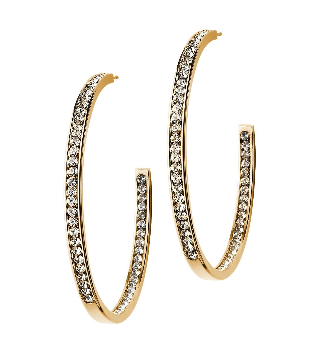 Andorra örhängen har klara fina stenar på halva utsidan och halva insidan. I det blanka stålet ger kombinationen med stenar ett mycket effektfullt örhänge, perfekt till festen.