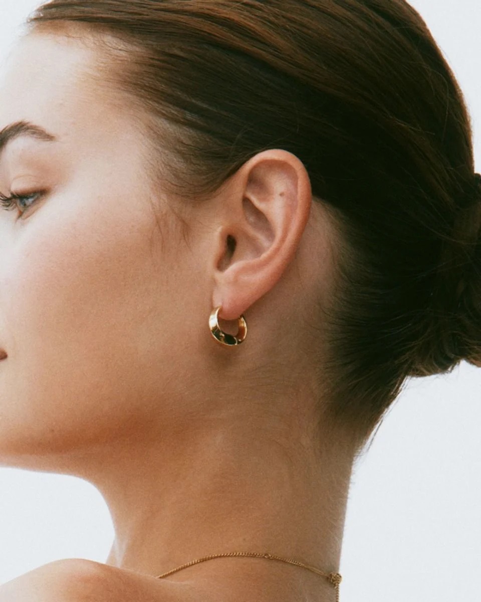 Ständig rörelse är temat för Helix, som bygger på en rund form som vrider sig runt sig själv. Seriens mindre hoops sitter vackert på örat och passar lika bra till vardags som till festligare tillfällen, gärna tillsammans med seriens halsband eller ring.