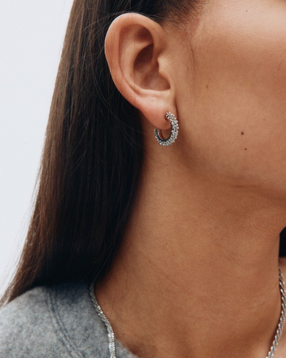 I Tinsel små creoler, har örhängena fint sammanvävda metallöglor som ger en lyxig glittrande känsla. Bär gärna halsbandet från serien Tinsel eller Tinsel Pearl till örhängena.