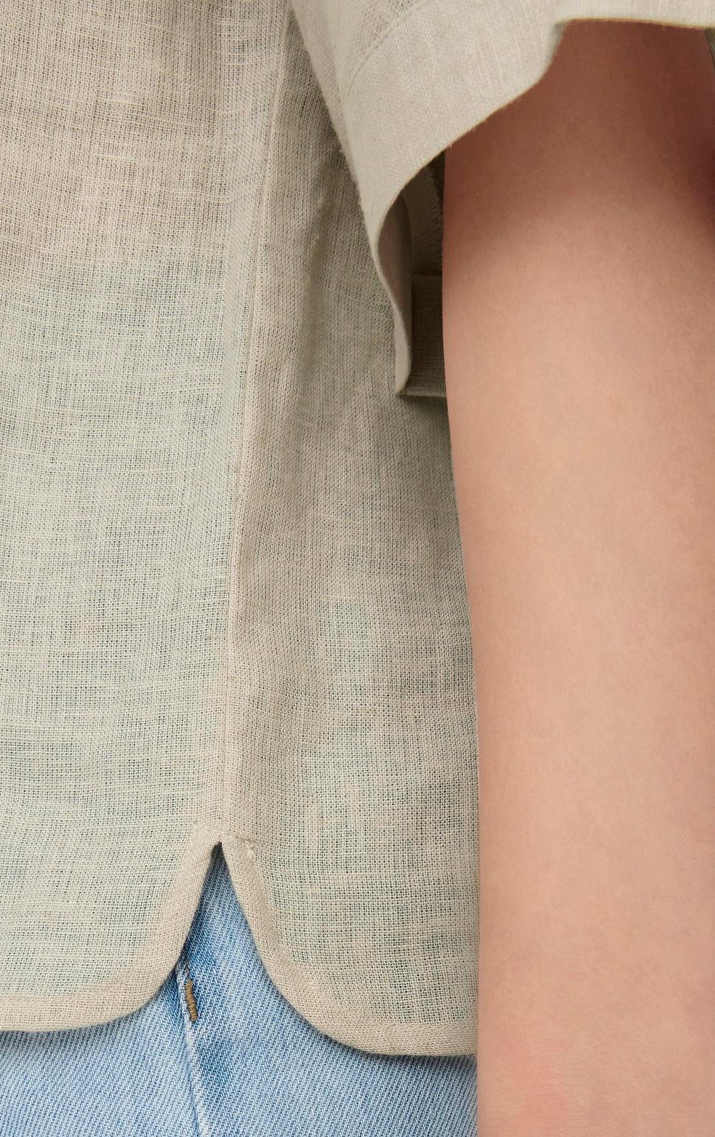 *Gjord i mix av lin och bomull med tydlig linne-struktur och tunn, luftig känsla. En ganska stilig finish för att vara en linneskjorta. Den blir casual men inte ovårdad. Materialet blir en aning transparent.
