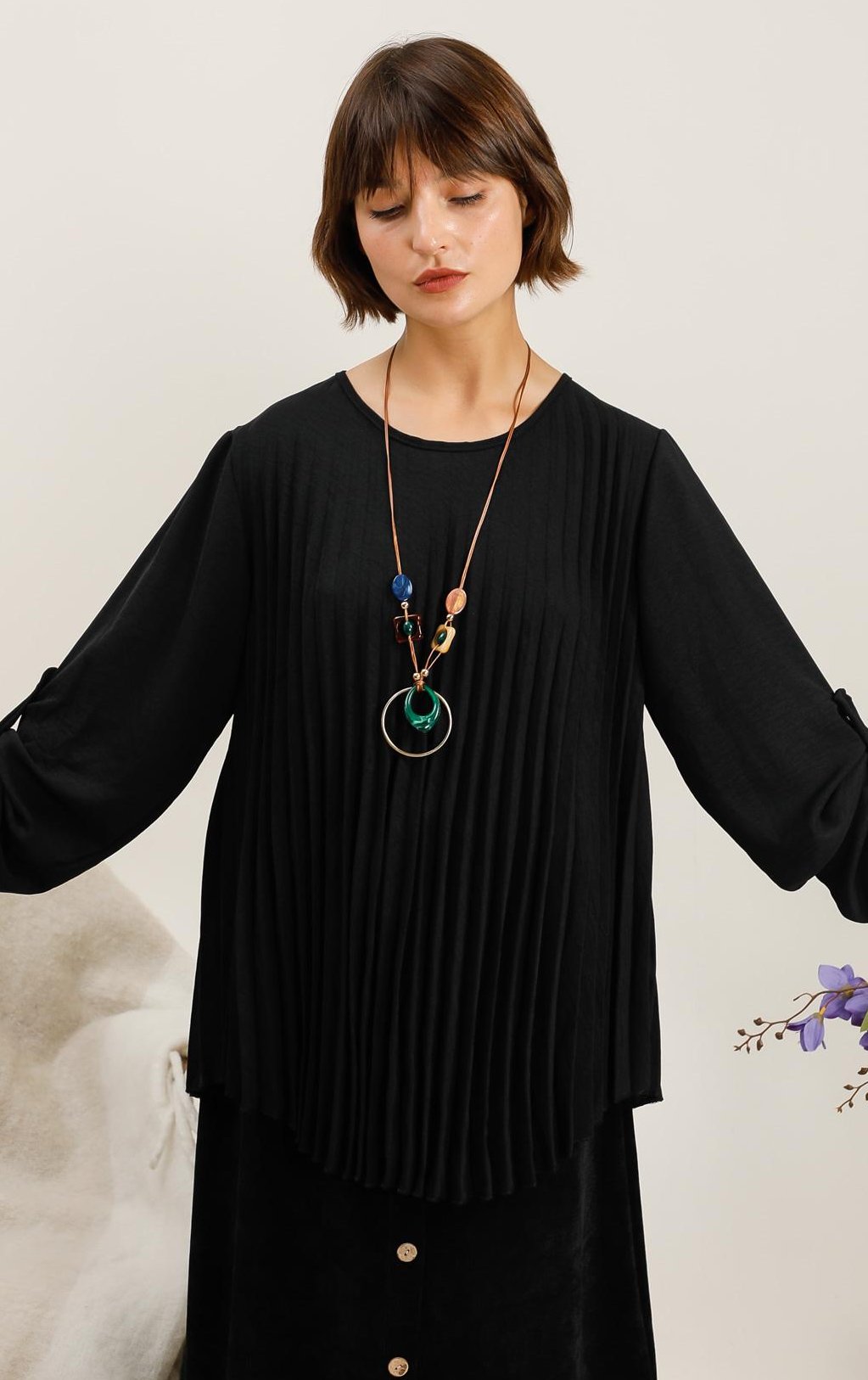 *Gjord i vävd viskos med fin struktur i ytan och plisserad finish i kroppen medan ärmarna är släta.