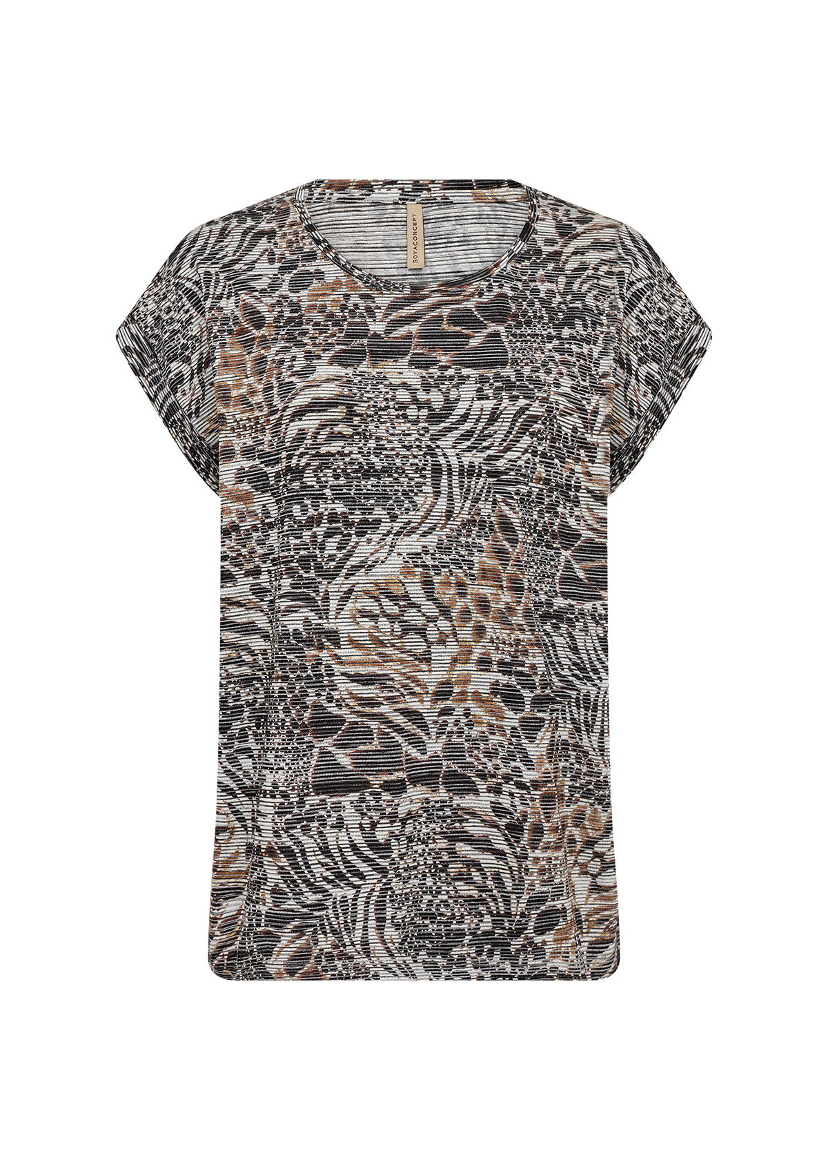 26994 - SC-Galina 55 från Soya Concept är en bekväm T-shirt tillverkad i en blandning av 52% viskos, 44% polyester och 4% elastan. Denna t-shirt har en rundad halsringning, korta ärmar och ett heltäckande abstrakt tryck. Kombinera den med jeans eller skräddarsydda byxor för en smart, avslappnad look.