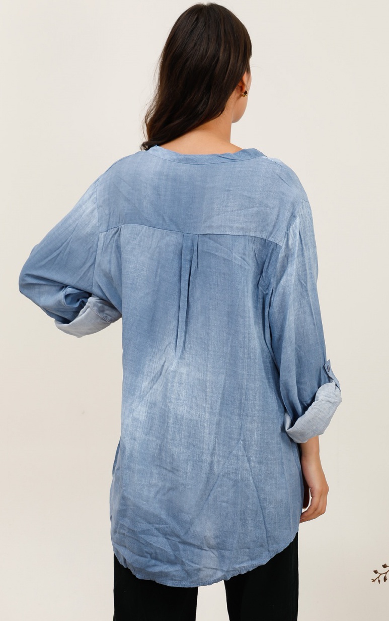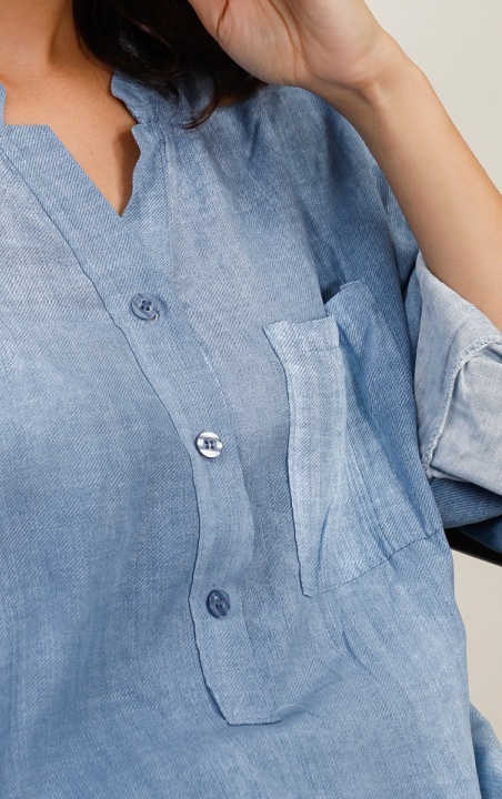 *Längre än en vanlig blus men kortare än en vanlig tunika. Rundad skärning så att den är kortare på sidorna än fram- och baktill.